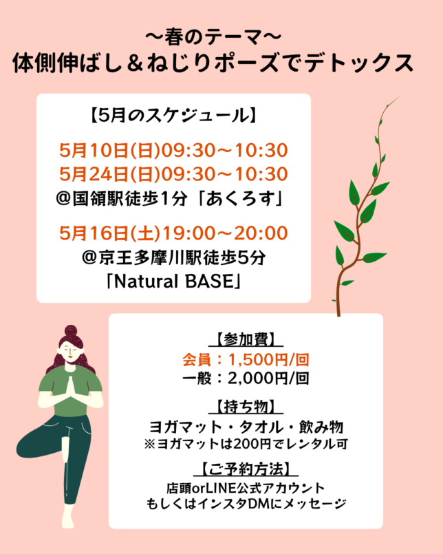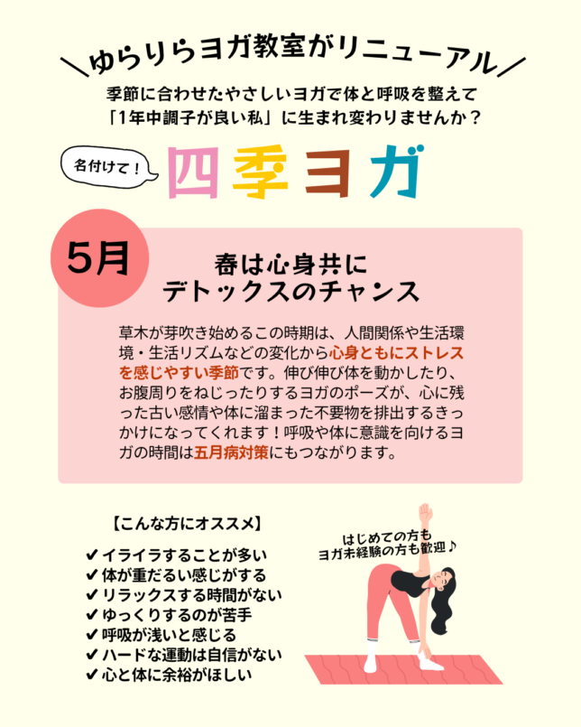 4月リニューアルしたヨガ教室「四季ヨガ」。